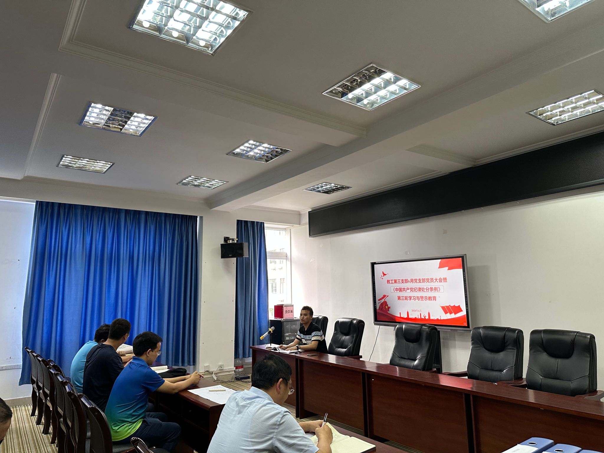 学习过程中,党支部采取领读式与研讨交流相结合的方式,逐条逐句学习了《条例》相关条款,并结合实际教学工作案例与经历进行了深入剖析。支部书记梅中亚同志强调,全体支部党员同志要深刻认识学习《条例》的重要性,将学习成果转化为实际行动,切实做到学纪、知纪、明纪、守纪。