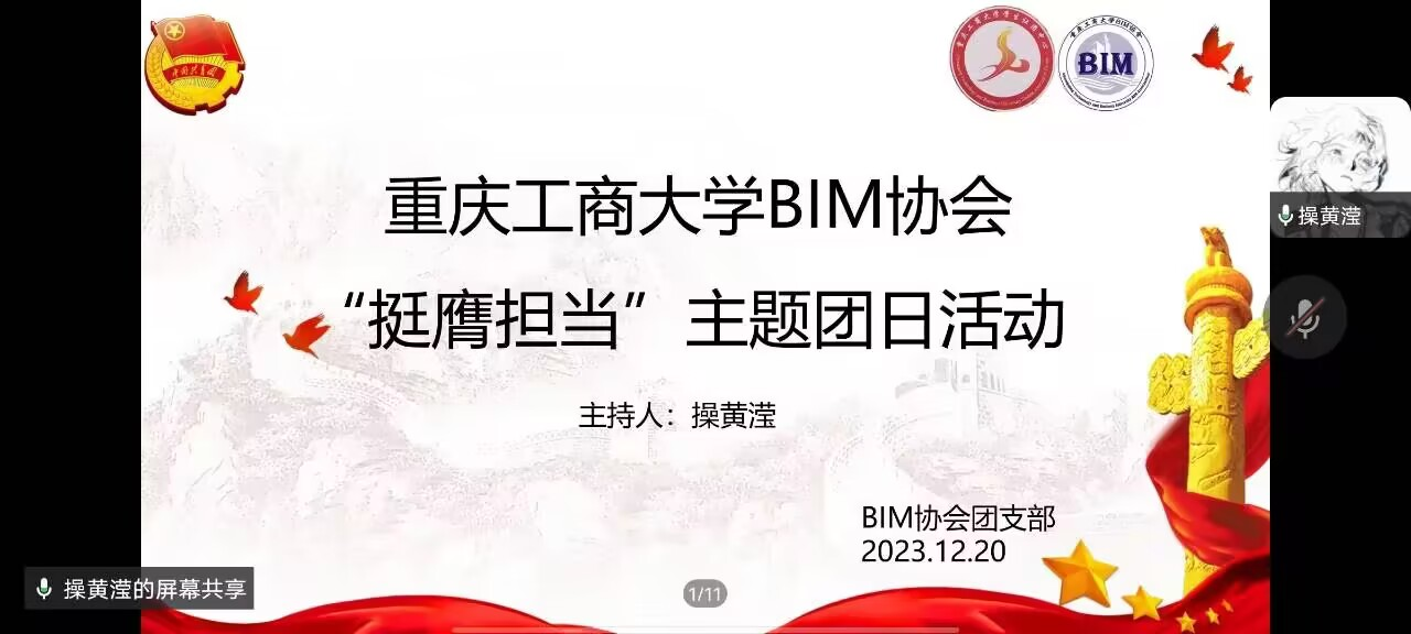 为了引领青年担当民族复兴的重任,培养青年敢于担当、锐意进取的品格。2023年12月20日,太阳网集团tcy8722BIM协会在企业微信线上组织开展了以“挺膺担当”为主题的团日活动。