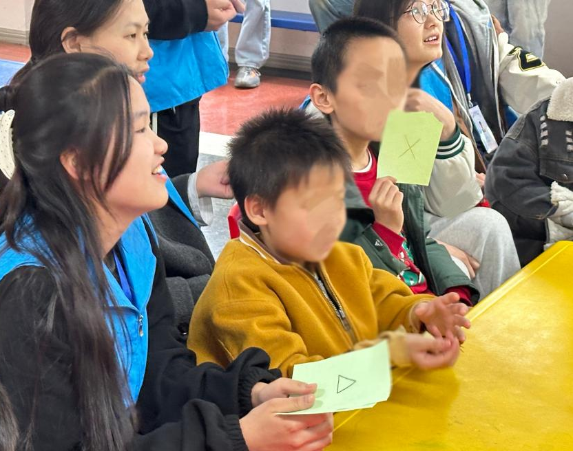 志愿者们用自己的耐心和温柔,让小朋友们慢慢打开心扉,通过绘画、音乐欣赏、互动游戏等方式帮助心智障碍儿童建立自信心,培养他们的兴趣爱好。