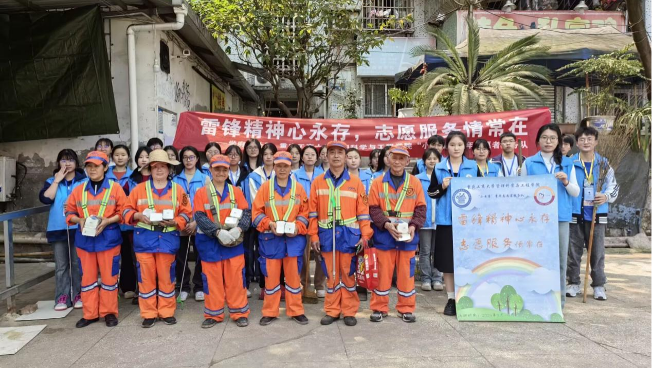 下午志愿者们都按时到达了活动场地,集合完毕后志愿者们签到并穿戴会服、工作证,所有成员根据现场主持人的安排分成几个小组,环卫工人向志愿者们演示巡回保洁车、吸扫车的使用,小组长带领组员跟随环卫工人除杂草、添绿植、打扫街道卫生,活动结束后志愿者代表为环卫工人发慰问品,环卫工人们在横幅上签字并与志愿者合影留念,