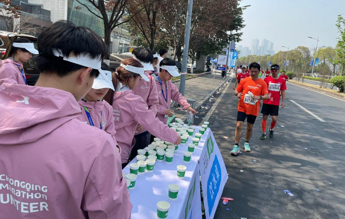 随着比赛的临近,志愿者们迅速进入状态。他们主要负责在37.5km和40km的补给站为选手提供饮水和食物,有的负责维护赛道秩序,确保比赛的顺利进行。每一个岗位,都有他们忙碌的身影。