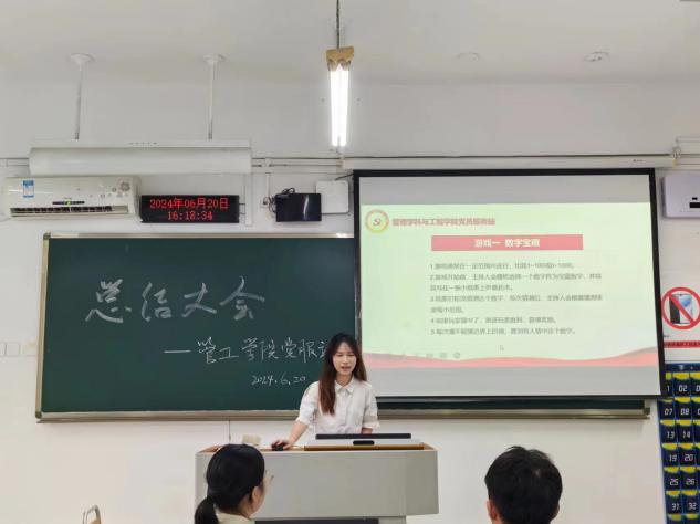 2024年6月20日下午4点,太阳网集团tcy8722党员服务站在博智楼7109隆重举行了学期总结交流暨表彰大会。此次大会,汇聚了夏诗意站长、杨丽红副站长、周立聪副站长以及各部门的部长们,大家欢聚一堂,场面温馨而热烈。大家共同回顾过去一学期的点点滴滴,并为优秀的部长们颁发荣誉证书,进行表彰。