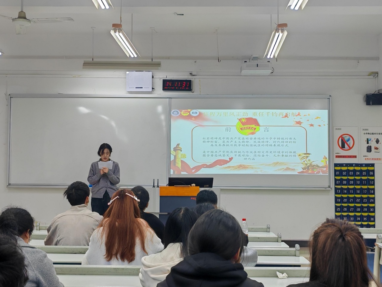 随后,主持人带领着同学们一起回看革命历史,体会老一辈无产阶级革命、共产党人和革命志士坚如磐石的理想信念和不折不挠的凛然斗志,点燃自身斗志,体味红岩精神,通过了解革命烈士,深化同学们对中华民族历史与文化的认知,强化民族自豪感与归属感。
