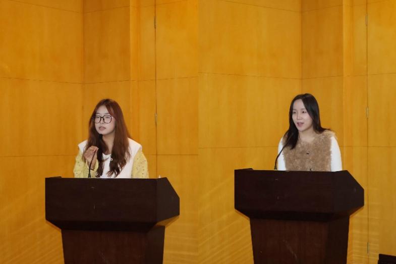 第四项议程由张双盈、吴诗雨两位上届员工会代表进行经验分享。张双盈分享了五步法给各位员工会成员,从立项到复盘,分别为“立项定标”、“方案细化”、“任务分解”、“宣传预热”、“现场执行与复盘”五步。她将自己多年的工作经验毫无保留的传授给在座的各位同学,希望他们能在往后的工作熟练运用,以尽量避免流程性错误。吴诗雨同学则是强调了制度正确与为同学服务两个方面。她希望各位员工会成员能够牢记自己的初心,全心全意为同学们服务。