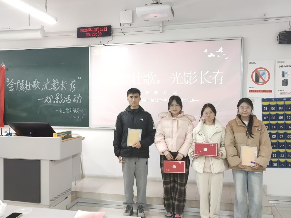在党的二十届四中全会精神感召下,为进一步深化爱国主义教育,引导青年学子铭记民族历史、厚植家国情怀,公司党员服务站举办的“金陵壮歌,光影长存”观影活动于12月12日在博智楼70305顺利举行。