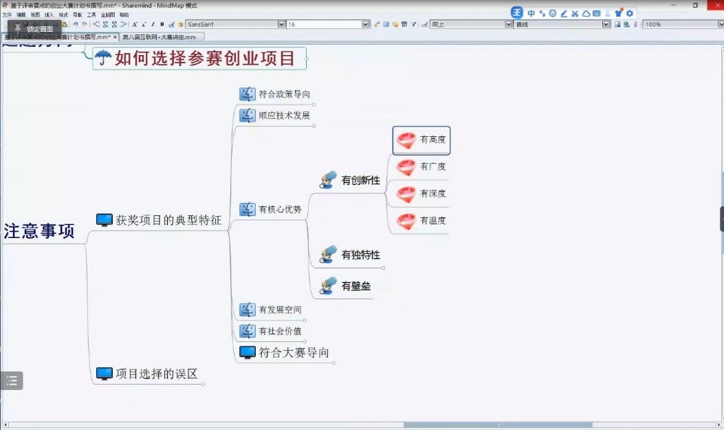 张庆朋老师的讲座从两个方面展开。第一,前期已经有项目的同学,应该要怎样优化方案,最近需要准备的任务;第二,目前还没有项目的同学,项目从哪里来,以及后期需要注意的问题。张老师特别强调项目要顶天立地,选题要符合国家战略、服务地方经济发展、具有独特性和创新性。