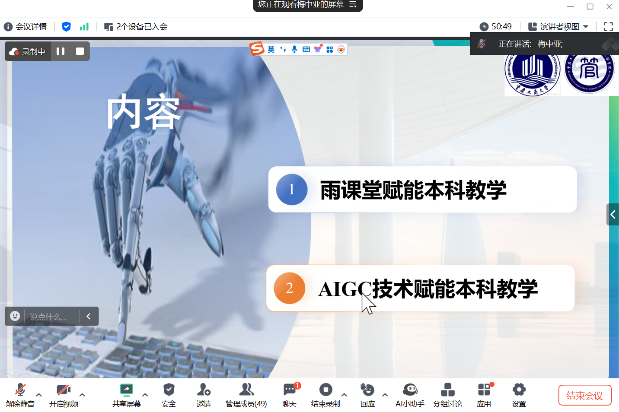 首先由梅中亚博士为老师们详细分享了关于雨课堂和AIGC技术如何赋能本科教学,并带领老师们一起实践操作。随后由曾倩博士为老师们详细分享了学习通的使用。