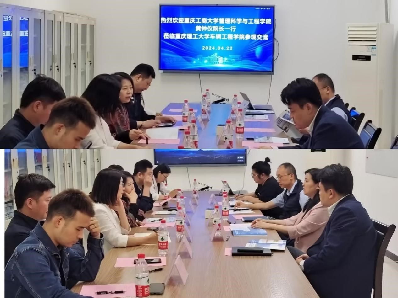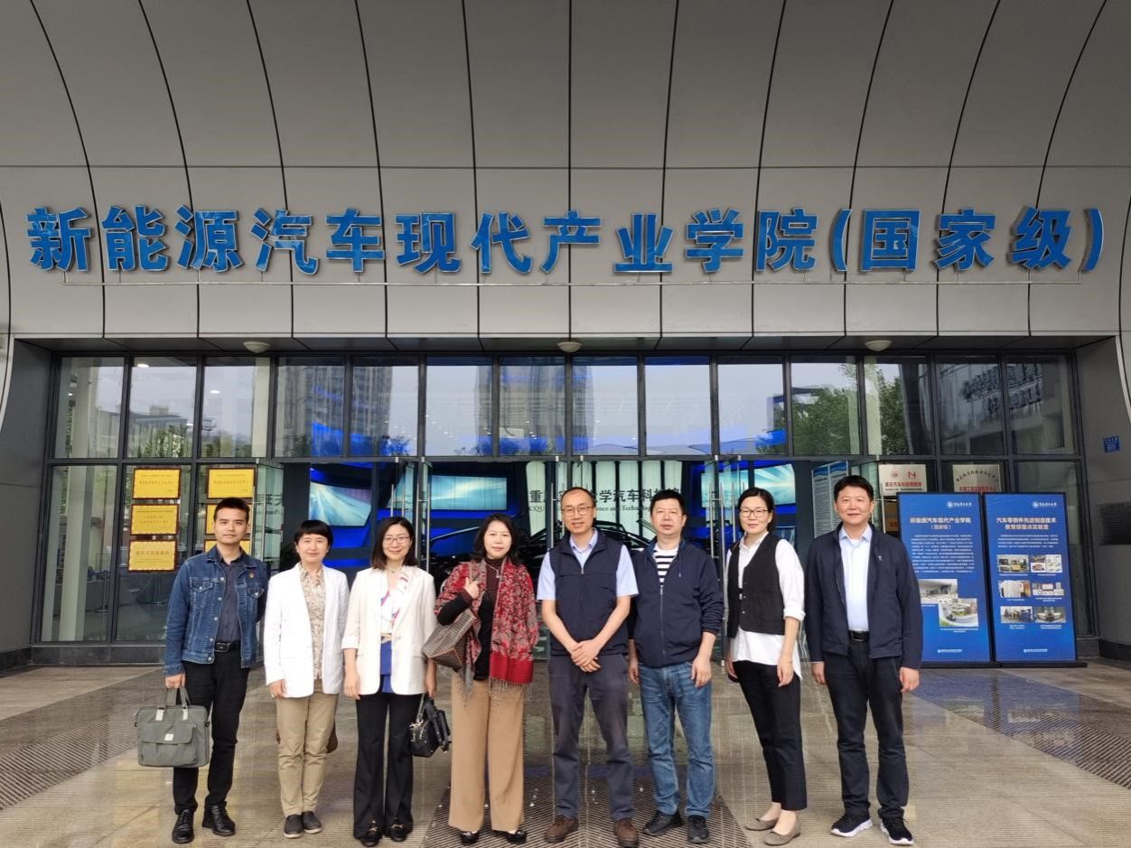 2024年4月22日上午,为进一步推进现代产业公司建设和发展,深度推进产教融合,公司经理黄钟仪、副经理陈久梅、副经理詹川,物流管理系主任龚英、电子商务系主任唐国锋、大数据管理与应用系主任邢文婷、工程管理系副主任梅中亚一行赴重庆理工大学新能源汽车现代产业公司,与车辆工程公司党委书记俞宁、副经理蒋成约、副经理郭栋、新能源汽车现代产业公司建设办公室负责人宋洁进行了交流。