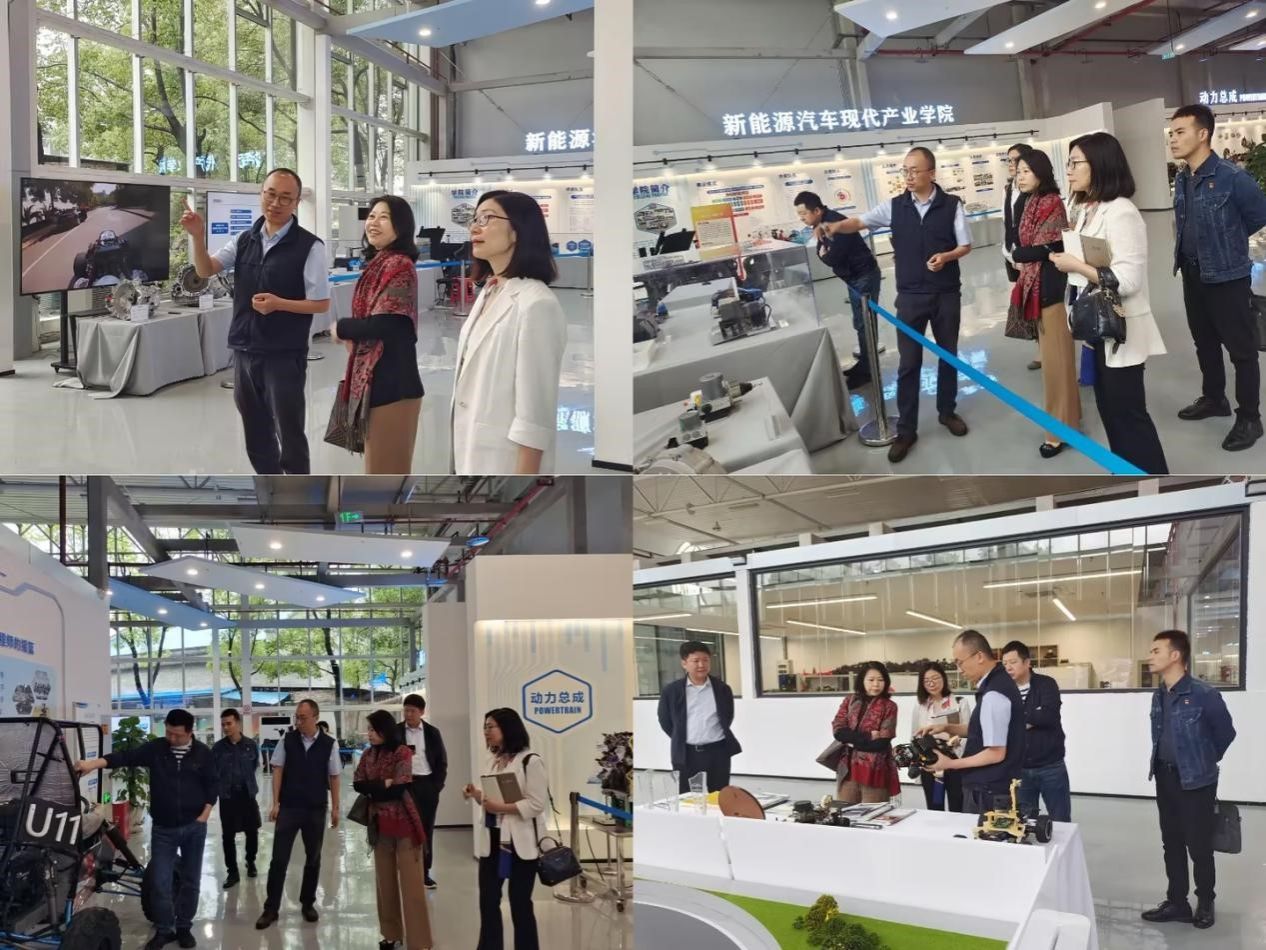 会前,车辆工程公司副经理蒋成约带领各位老师参观了员工科技创新成果、车辆工程国家级教学实验室和创新工作室,详细介绍了新能源汽车现代产业公司的人才培养模式、创新工场、成果转化等相关情况。