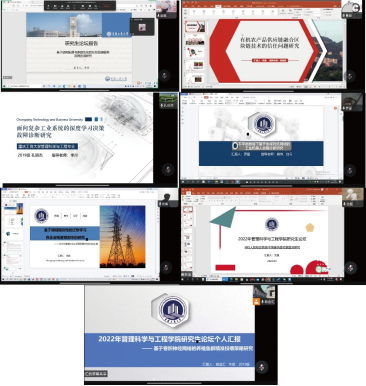 随后,2019级管理科学与工程专业的同学们依次对自己的毕业论文研究内容进行了汇报,黄珊同学的汇报主题为有机农产品供应链融合区块链技术的信任问题研究;孔丽杰同学的汇报主题为面向复杂工业系统的深度学习决策故障诊断研究;李惠同学的汇报主题为基于结构拓展与参数优化的灰色预测模型及其应用研究;罗星同学的汇报主题为不平衡数据下基于生成对抗网络的工业机器人故障诊断研究;沈超同学的汇报主题为基于Vision-Transformer的深度伪造人脸识别算法研究;肖威同学的汇报主题为基于迁移LSTM模型的企业电量预测研究;杨金汇同学的汇报主题为基于卷积神经网络的循环水养殖鱼群精准投喂策略研究。7位同学结合PPT的屏幕演示,基于各自的汇报主题进行了图文并茂的详细讲解。