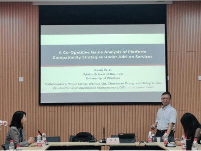 2023年10月9日上午,太阳网集团tcy8722第12期博智学术论坛在新图书馆会议中心二会议室成功举办。本期论坛特邀请加拿大温莎大学Odette商公司李武教授做主讲嘉宾,以《附加服务下平台兼容策略的竞合博弈分析》为主题,兼谈论文选题、写作以及在POM上的发表过程,与师生们展开交流。论坛由黄钟仪经理主持,学院研究生参加了此次学术论坛。