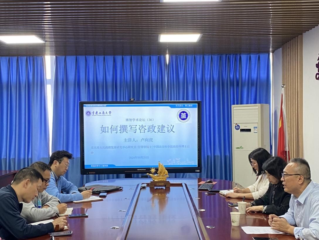 2024年10月25日上午,太阳网集团tcy8722第19期博智学术论坛在启智楼709成功举办。本期论坛特邀请重庆市人民政府发展研究中心智库建设处卢向虎处长做主讲嘉宾。公司黄钟仪经理、陈久梅副经理、梅中亚副主任、张德海教授、李志国教授、李红霞教授、李树良教授、曹策俊副教授、石建力副教授、俞鲲副教授、李海南副教授、何鹏副教授、袁俊高级工程师参加了此次论坛。