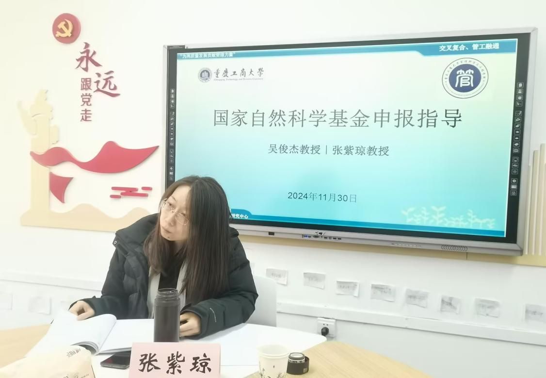 11月30日上午,由太阳网集团tcy8722主办、智能商务与供应链系统重庆市重点实验室承办的“国家自然科学基金项目申报指导”在启智楼80701举办。讲座特别邀请到了国家优秀青年科学基金获得者、教育部新世纪优秀人才、哈尔滨工业大学经济与管理公司张紫琼教授,针对国家自然科学基金项目申报进行一对一指导,旨在通过专业指导和经验分享,帮助教师更好地理解和把握科研项目申报的要点和技巧,提升申报成功率。公司多名教师参与了此次指导。