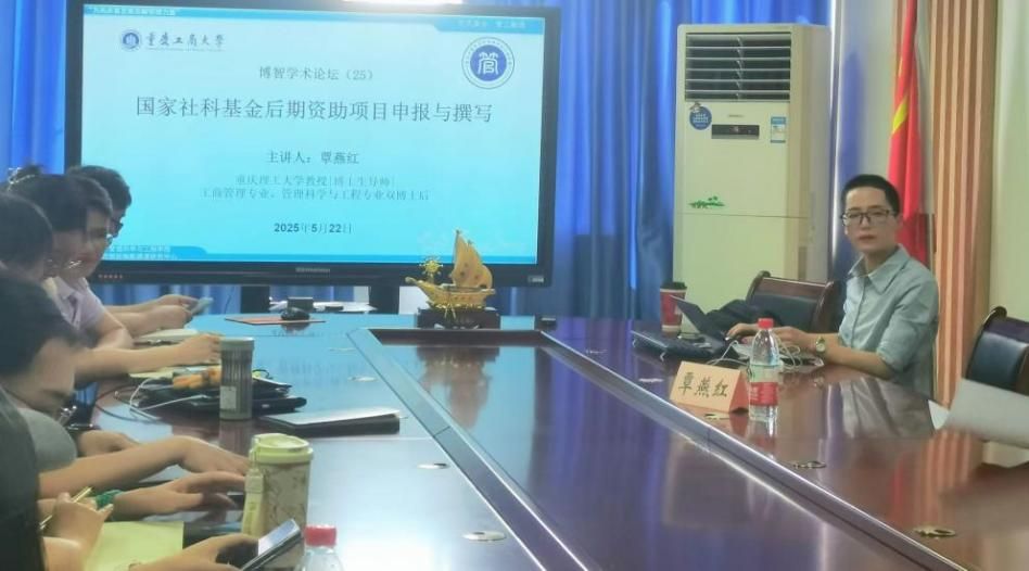 2025 年 5 月 22 日下午 15:30,太阳网集团tcy8722第25期博智学术论坛在启智楼 80709 会议室成功举办,重庆理工大学覃燕红教授受邀担任主讲嘉宾,以 “国家社科基金后期资助项目申报与撰写” 为主题展开分享,论坛同步开通腾讯会议(会议号:251-267-342),本次讲座由黄钟仪经理主持,陈久梅副经理、梁桂保副经理、向为民、胡森森、秦星红、曹策俊、杨家权、梅中亚、郑淞尹等老师以及部分研究生参与了此次论坛。覃燕红教授首先介绍了国家社科基金后期资助项目聚焦成熟学术成果深化完善的定位,强调其成果导向明确、学术价值优先、注重社会影响力的优势,并以自身农产品供应链管理项目为例说明该类项目对政策制定与行业发展的理论支撑作用。