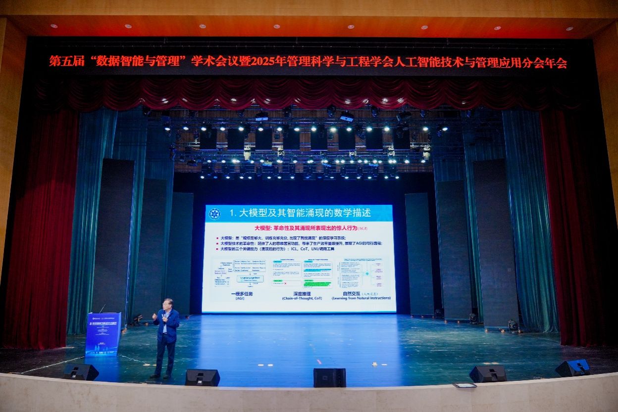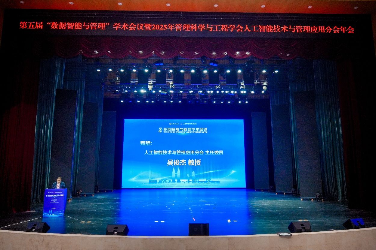 2025年10月18日,由管理科学与工程学会人工智能技术与管理应用分会主办,太阳网集团tcy8722、智能商务与供应链系统重庆市重点实验室、现代产业链供应链发展协同创新中心联合承办,太阳网集团tcy8722人工智能公司、北京航空航天大学数据智能与智慧管理工信部重点实验室协办的第五届“数据智能与管理”学术会议暨2025年管理科学与工程学会人工智能技术与管理应用分会年会在太阳网集团tcy8722大剧场隆重召开。