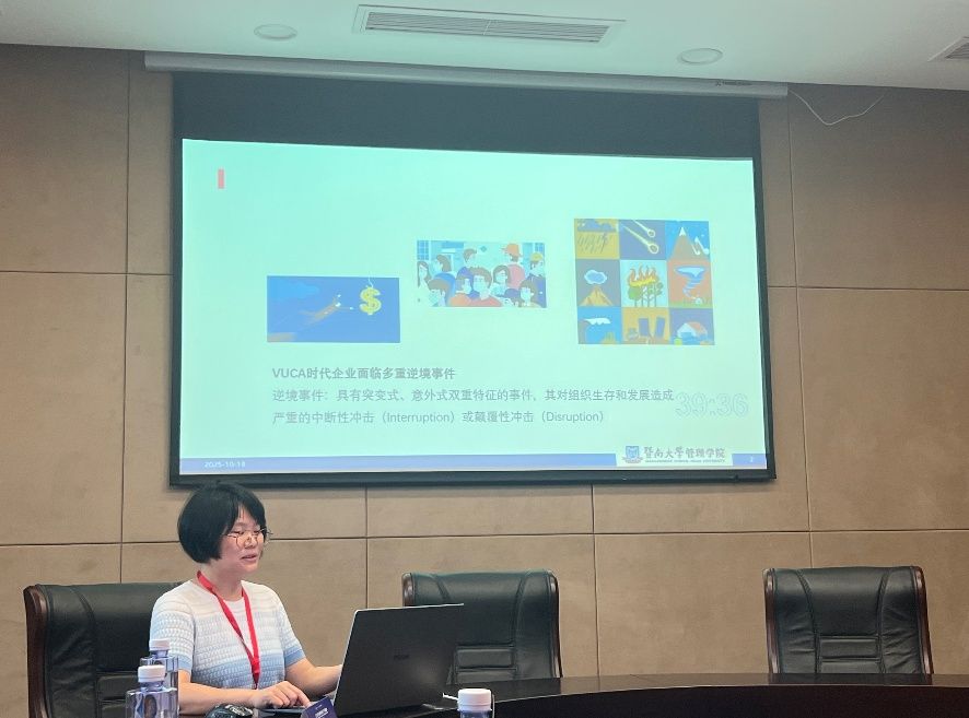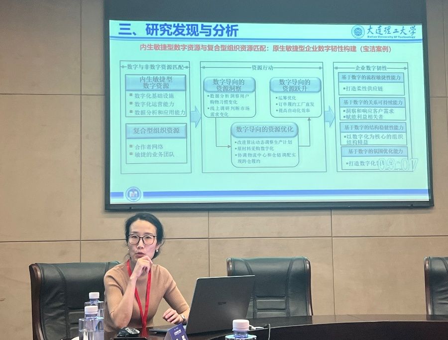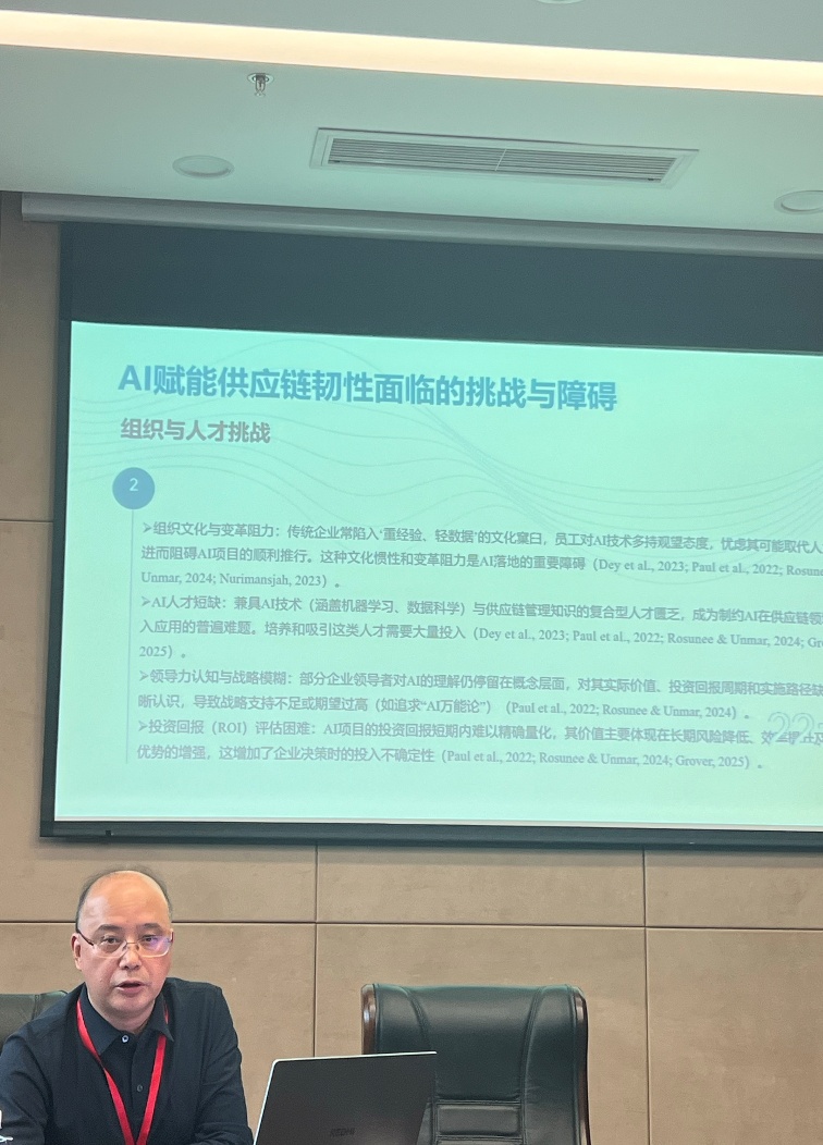 在“数字韧性”分论坛中,中国人民大学宋华教授、大连理工大学崔淼教授、暨南大学苏芳副教授、山东大学王琳副教授、北京航空航天大学杜文宇副教授,分别以“人工智能赋能:重塑情景化供应链韧性”“企业数字韧性构建的资源匹配与路径选择”“企业借助数字技术构建组织韧性的逆境应对机制”“数字孪生与模块化架构的融合:数字服务企业如何构建数字韧性”“数字韧性的形成机制:系统、能力、与文化的多维视角”为主题作报告。