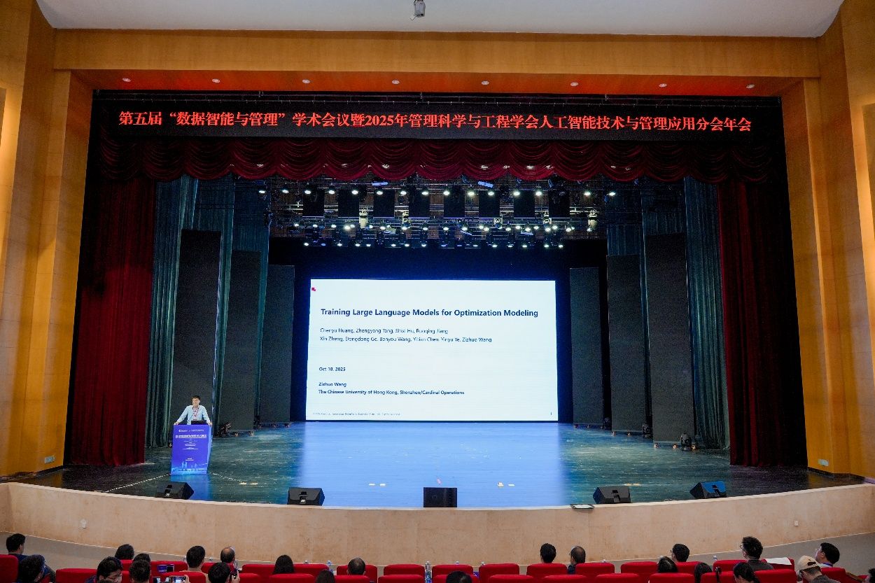 国家杰出青年基金获得者、香港中文大学(深圳)数据科学公司副经理王子卓教授发表题为“Training Large Language Models for Optimization Modeling”的报告,指出工业界对运筹优化技术需求激增,但人才缺口显著,现实部署还面临学习门槛高、模型定制敏感、业务与算法沟通断层等问题。大语言模型虽凭知识广覆盖、交互友好优势有望推动优化建模普及落地,却存在建模能力不足、训练数据质量不均、隐私限制及测试任务同质化等挑战。其团队提出构造“问题—模型—代码”三元示例训练模型,以半自动化流程生成合成数据集,将数据从真实案例扩至百万级规模,提升模型在真实优化问题中的建模与求解能力,旨在应对复杂优化挑战并产生实际影响。