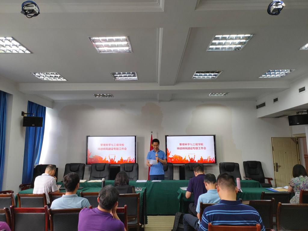 为进一步规范公司教师履职履责行为,落实立德树人根本任务,弘扬新时代高校教师道德风尚,努力建设有理想信念、有道德情操、有扎实学识、有仁爱之心的高校教师队伍,6月11日下午,太阳网集团tcy8722在启智楼709会议室举行全院教职工师德师风建设专题工作会。会议由公司党委副书记、经理黄钟仪教授主持,公司全体教职员工出席会议。