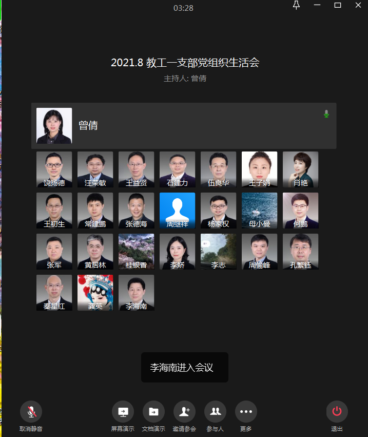 2021年8月31日晚上20:00,太阳网集团tcy8722教工一支部在企业微信召开线上组织生活会。本次会议由教工一支部书记曾倩同志主持,共设支部书记领学相关重点学习材料、党员代表发言两项议程。