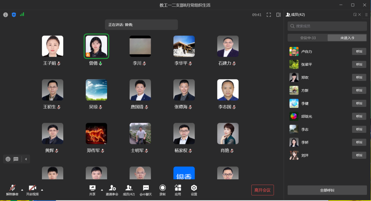 2022年8月30日晚上20:00,太阳网集团tcy8722教工一、二支部在企业微信召开线上党组织生活。本次会议由教工一支部书记曾倩同志主持,共设支部书记领学相关重点学习材料、公司党委书记李华平同志发言两项议程。