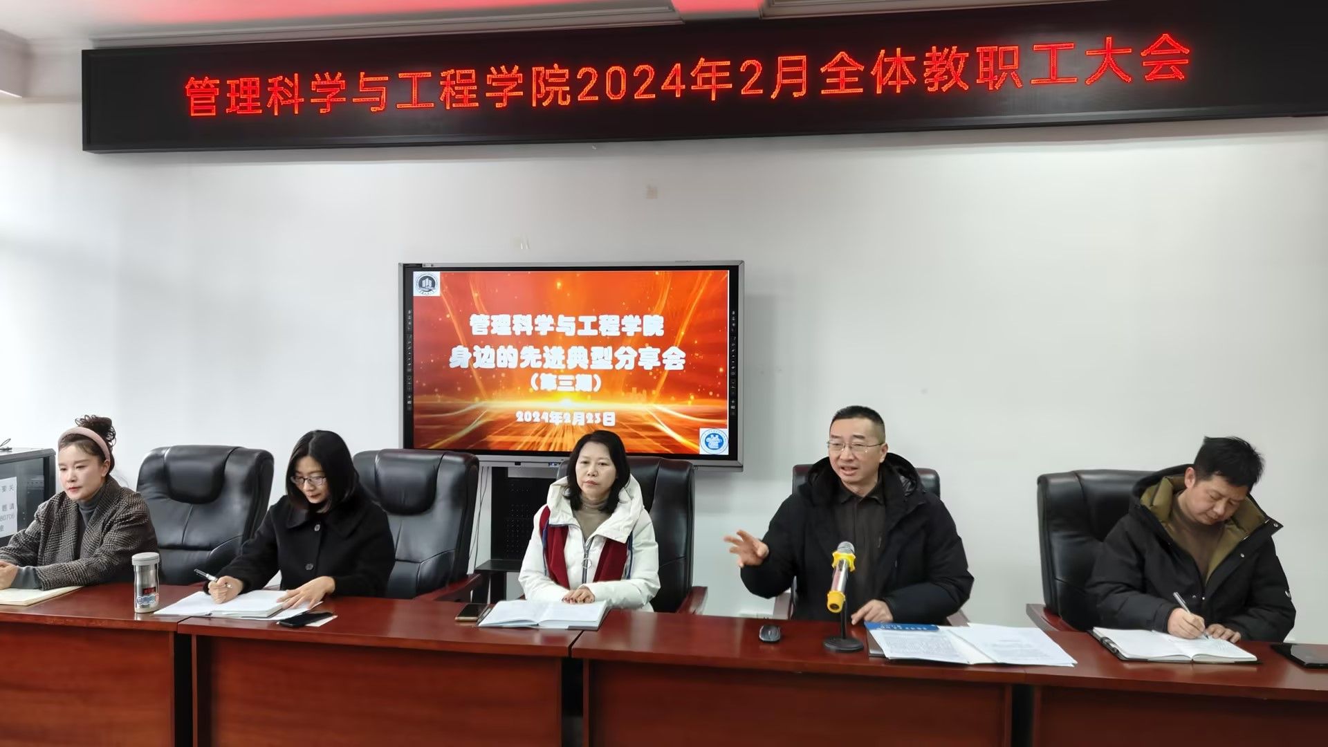 2024年2月23日下午,太阳网集团tcy8722在80707会议室,召开第三期“身边的典型”分享会,由电子商务系王江涛进行分享。公司班子、全体教职工参加了本次会议,会议由党委书记李华平主持。