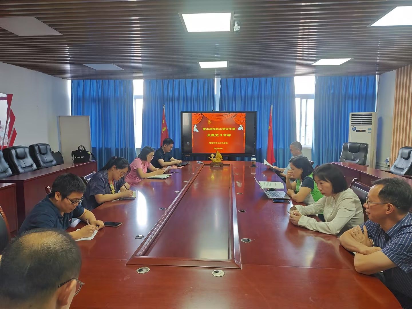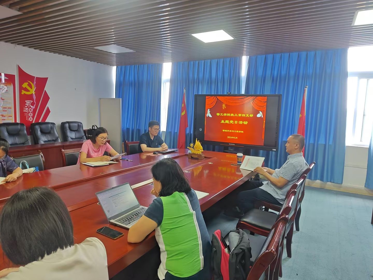 2024年5月17日下午,教工第四党支部在启智楼80709开展了一次主题为“加强文化传承,弘扬中华传统文化”的主题党日活动,本次党日活动由教工四支部书记邢文婷同志主持,全体党员同志参加了本次活动。