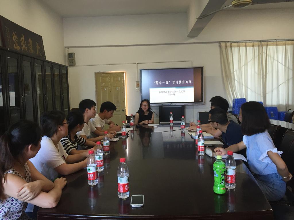 会上,支部书记向丹丹老师首先带领大家学习了中共中央办公厅于2016年2月28日印发的《关于在全体党员中开展“学党章党规、学系列讲话,做合格党员”学习教育方案》,指出 “两学一做,基础在学,关键在做,不是一次活动”,并要求支部每名同志必须充分认识开展“两学一做”学习教育对于推动全面从严治党向基层延伸、保持发展党的先进性和纯洁性的重大意义,要求大家以习近平总书记系列重要讲话精神武装头脑、指导实践,争做合格员工党员;做好老师与同学间的沟通工作,在学习、生活、班团活动等方面处处发挥先锋模范作用。