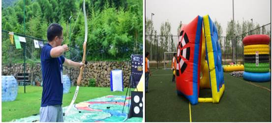 【比赛方法】在规定的区域内用弓箭设计标靶,每人拥有3次弓箭射击机会,该队8人成绩之和计入总成绩,最终以击中的次数进行排名。