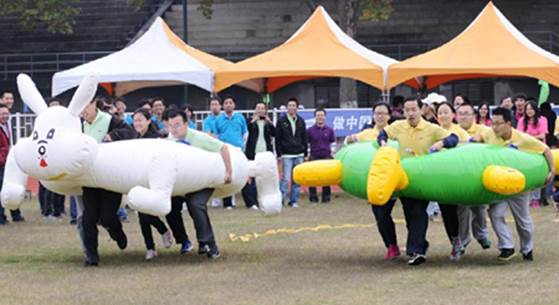本次比赛设7个集体项目,分别是龟兔赛跑、旱地龙舟、百发百中、鸿运彩球、超级玛丽、百步穿杨、贴字接力。