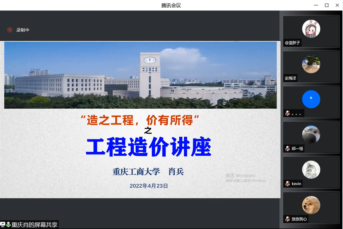 为拓宽公司工程管理专业员工专业视野、提早做好职业规划,4月23日,太阳网集团tcy8722工程管理专业在线举办“造之工程,价有所得”主题讲座。校审计处肖兵、工程管理系主任肖艳、郑传军老师,员工袁济东、许潇云及工程管理系员工代表参与了本次讲座。