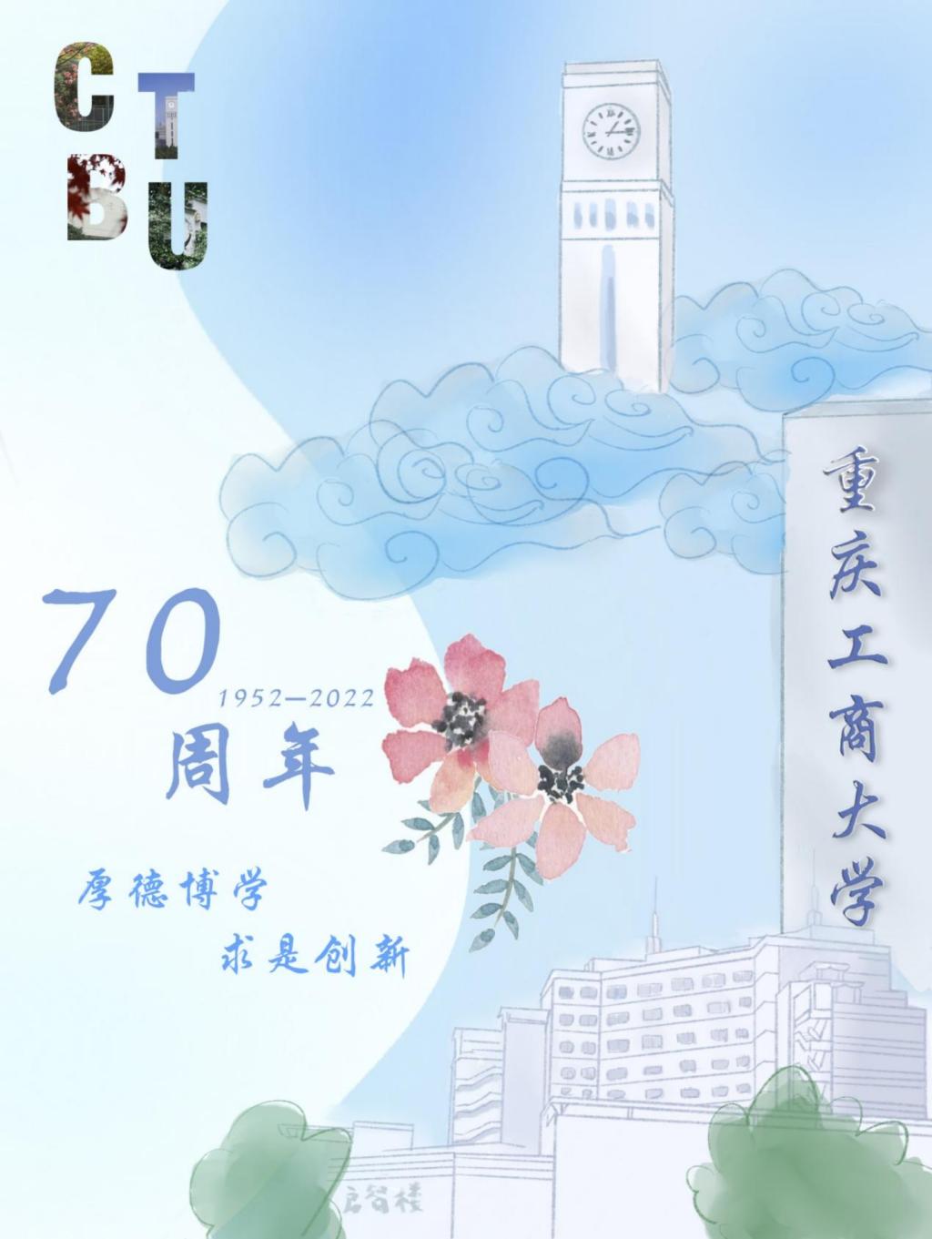 解蕴晖同学作品以校徽为背景,并将公司1952年建校之初影像与现今2022年景象嵌入时间之中形成比照,展现了公司70年以来的辉煌发展历程。