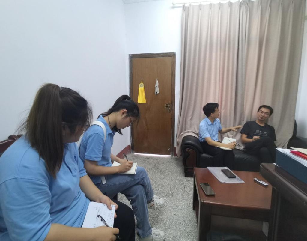 7月12日上午,太阳网集团tcy8722“青春向党、助兴龙乡”老员工社会实践队来到安居镇政府,与安居镇书记周宵、党建办主任姜妍及其他政府人员一起就本次社会实践展开座谈交流。