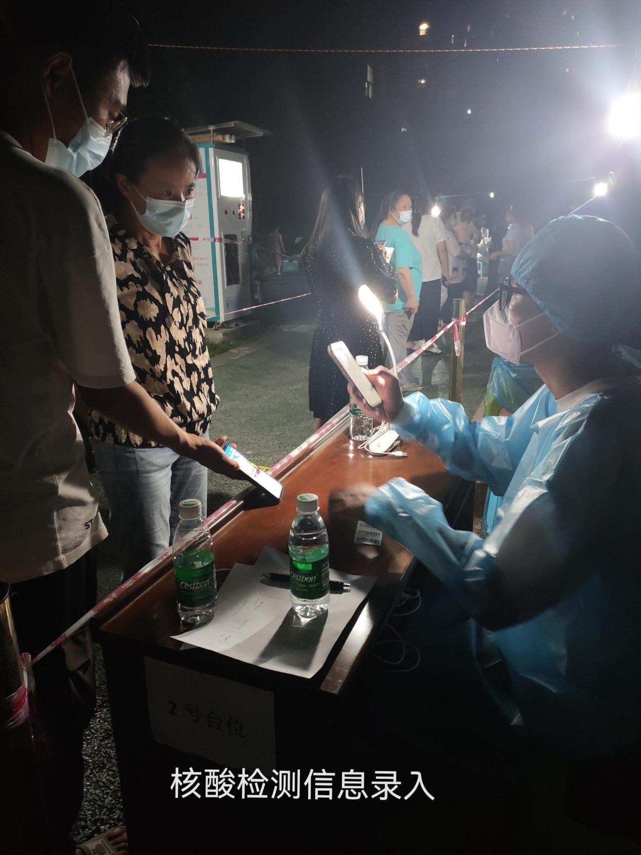 秦智蒙同学说到,由于核酸检测覆盖人群广,老人和小孩的信息录入不是很方便,同时又要经历夜间工作,因此防疫工作人员的工作有着一定的难度。但是大家齐心协力,居民也十分配合,加快了核酸检测的速度。虽然天气炎热,但是物资却没有缺乏,志愿者们恪守岗位,为疫情防控献出了宝贵的力量。