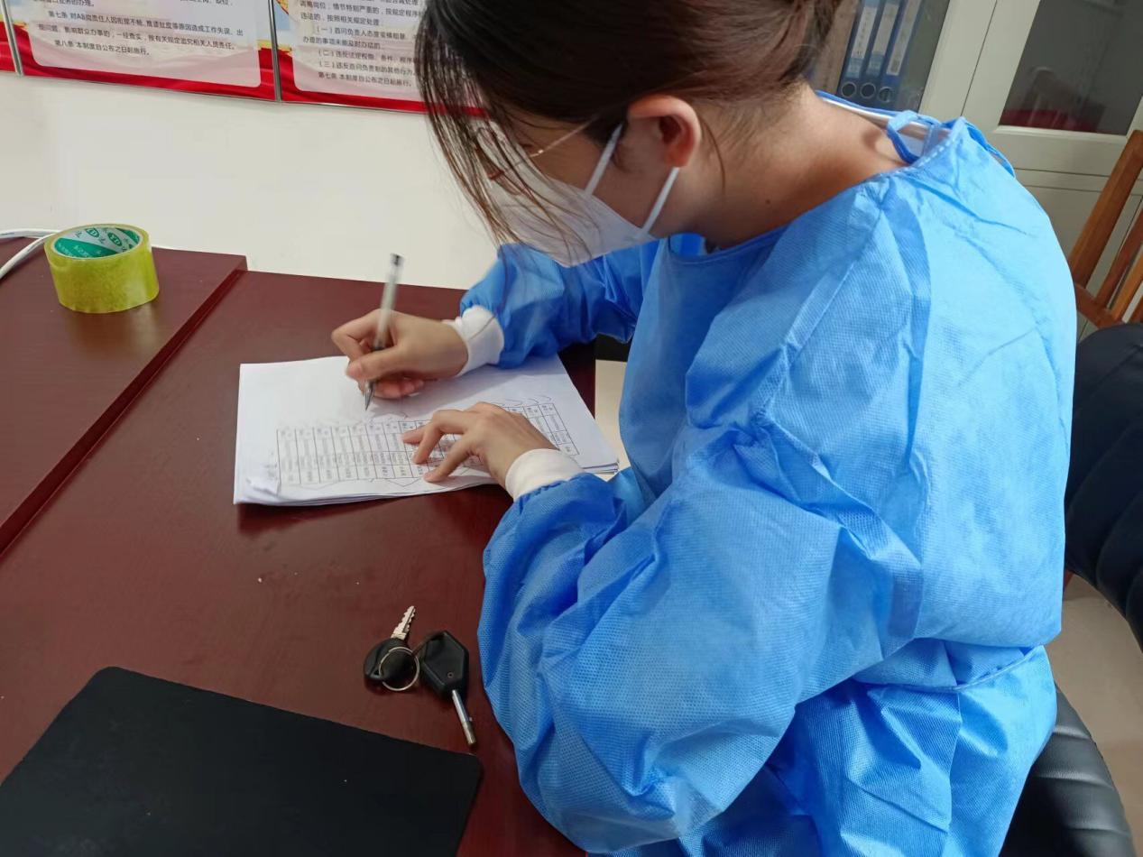 作为志愿者,何佳彤同学主要工作是登记核酸检测人员信息以及深入到家家户户采集居家隔离人员信息。披星戴月,早起晚眠,烈日下为村民登记信息,协助医护人员与村委会干部走遍村庄,只为让每位群众的核酸检测记录在册,防护服下是被汗浸透的衣衫,是不屈服于疫情的抗争之心。