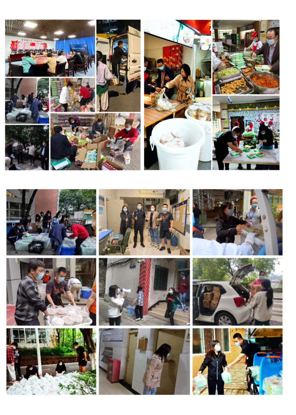 院领导身先士卒,与辅导员老师和工作人员一道深入员工楼栋、食堂等防疫工作第一线为员工解决实际问题。会议室有他们研究工作和布置工作党的身影和声音,办公室有他们接受任务、传递信息、完成工作的言行,食堂有他们盛饭传菜、大包装袋、点数搬运的真情付出,员工宿舍有他们卸车抬餐、分餐发饭的辛勤劳作与关爱,员工寝室里有他们深入了解和解决员工生活、学习、健康、思想、安全等方面情况的真情和关心,路上有他们边行走边思考如何科学合理解决员工和老师急难愁盼的关切,网上和实地有调查研究保证师生们精神和物质充实的对策与行动......他们以身作则把抗疫措施落实到位刻不容缓,他们尽心尽力回应师生的关切刻不容缓,他们深入一线解决师生的实际问题刻不容缓,他们全力以赴保护师生的健康安全刻不容缓,他们不辞幸劳为师生排忧解难刻不容缓......
