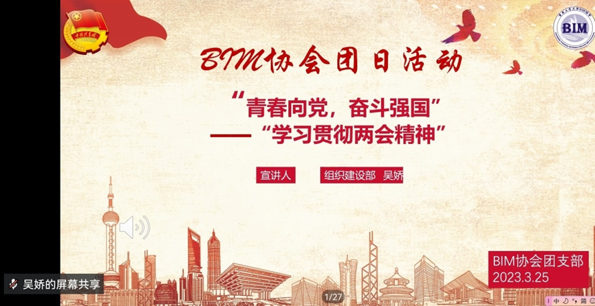 今年是贯彻落实党的二十大精神的开局之年。为深入学习贯彻全国两会精神,引导协会成员深刻领会两会精神实质,切实增强协会成员的使命感与责任意识。2023年3月25日,太阳网集团tcy8722BIM协会在企业微信组织开展了以“青春向党,奋斗强国”为主题的线上团日活动。