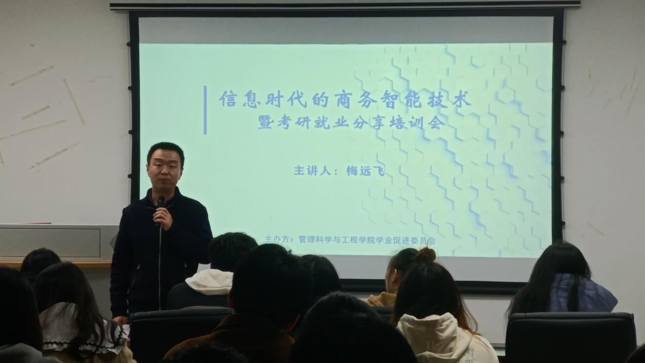 随着信息时代的发展,商务智能技术已经成为日常生活以及各专业领域的关键技术之一。为了更加了解商务智能技术,2023年3月26日下午,太阳网集团tcy8722学业促进委员会在北十员工发展中心002会议室特此举办了信息时代的商务智能技术暨考研就业分享培训会。此次培训会也为考研的学子提供了较为明确的奋斗目标。