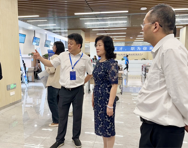 宋豫(左二)和成都市口岸办相关领导在招聘会现场
