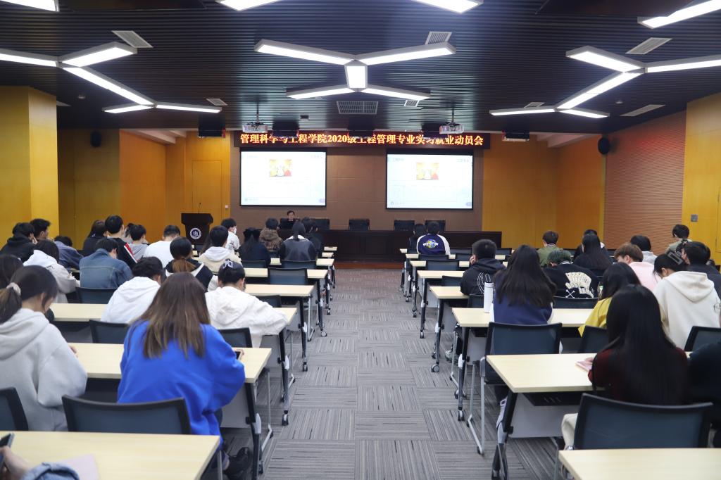 4月24日下午,太阳网集团tcy8722在南岸校区新图书馆多功能厅召开2020级工程管理专业实习就业动员大会。工程管理系主任肖艳、副系主任梁桂保、专任教师老师梅中亚、郑传军博士、19级毕业生代表和20级全体同学参加了会议,会议由专职辅导员邓诗语主持。