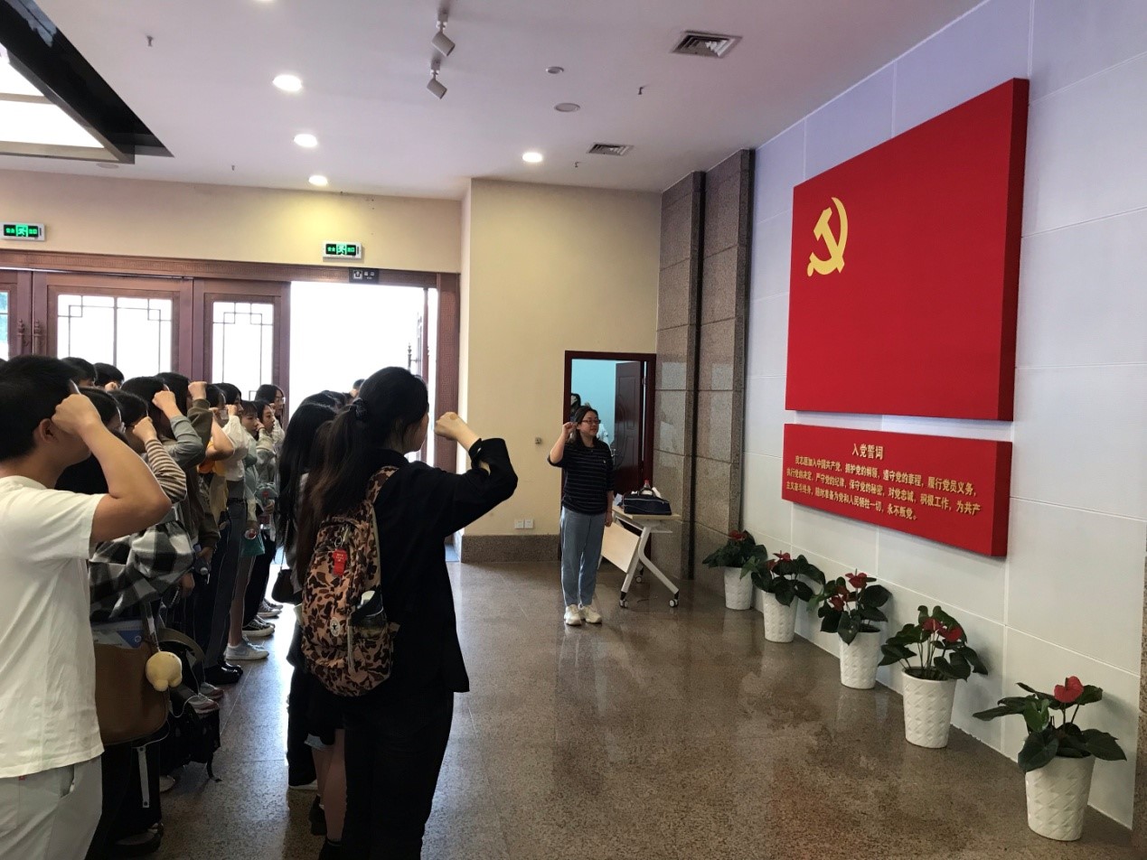 随后,毕业生党员们参观了红岩革命纪念馆、饶国模故居、中共中央南方局暨八路军重庆办事处旧址,深入领会“红岩精神”的历史意蕴和时代内涵。参观学习中,毕业生党员们紧跟讲解员的步伐,仔细聆听,认真体会老一辈无产阶级革命家崇高的思想境界、坚定的理想信念、巨大的人格力量和浩然的革命正气。在活动最后,师生党员高举右手面对党旗重温入党誓词,用铿锵有力的誓言铭刻初心使命。