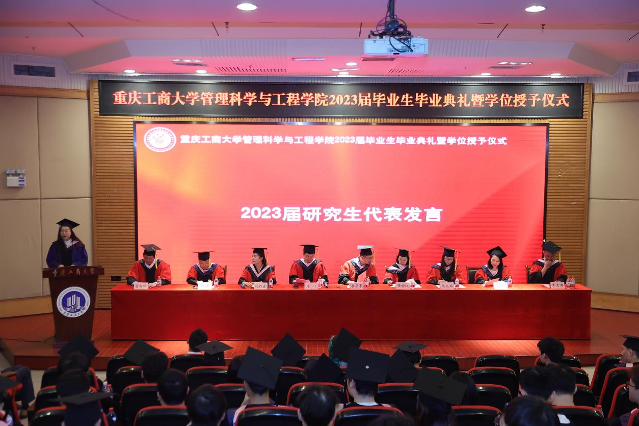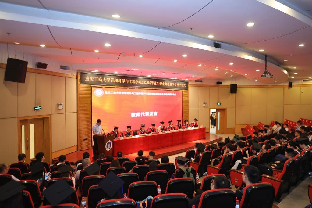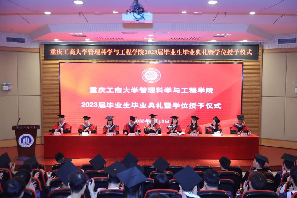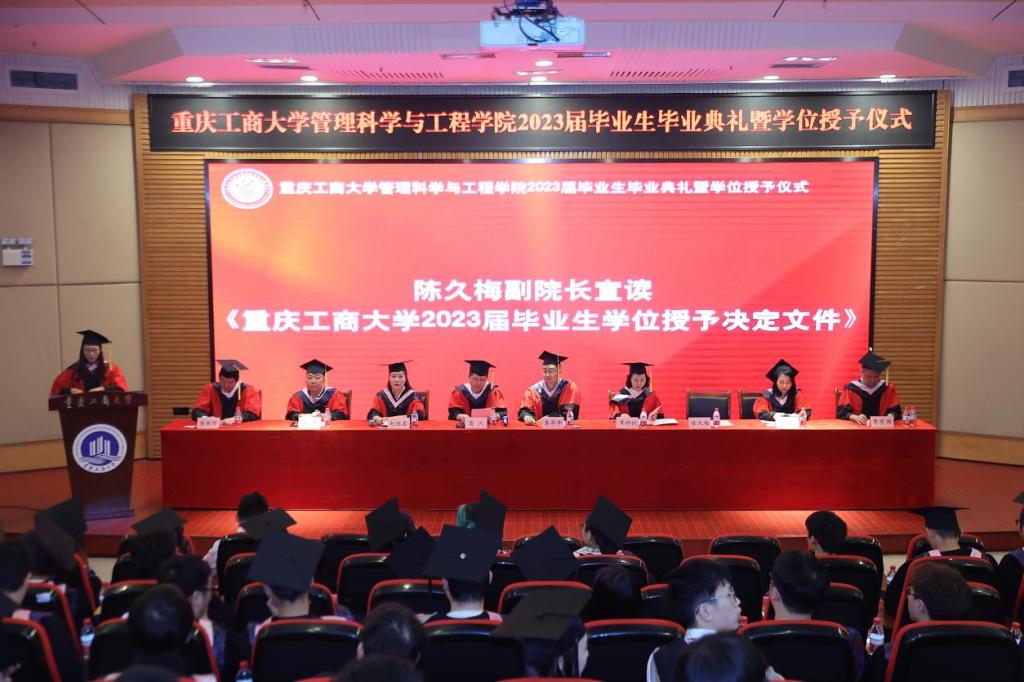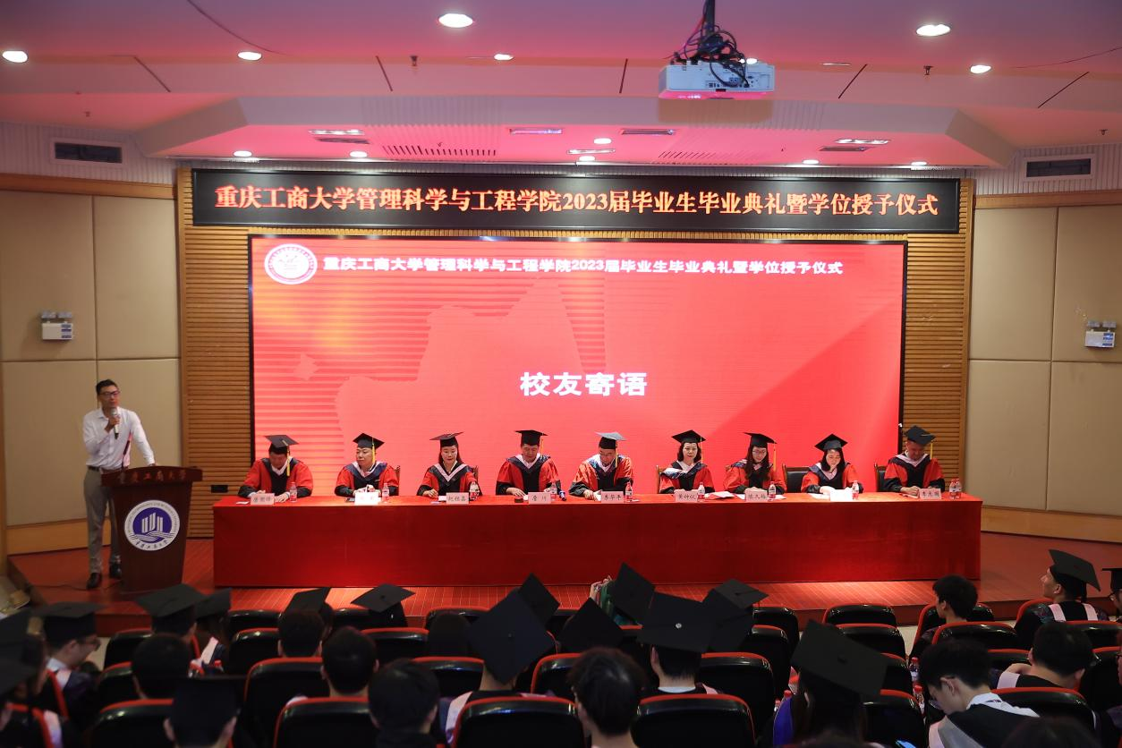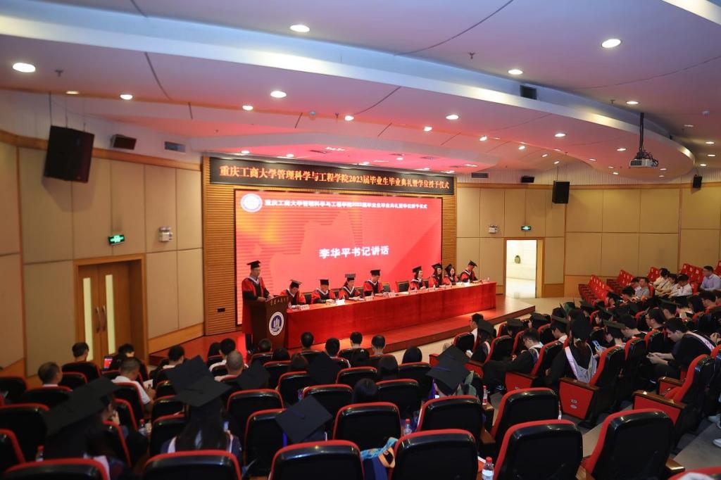 典礼现场隆重热烈,公司党委书记李华平、经理黄钟仪,副书记赵钰鑫、副经理詹川、陈久梅,工程管理系、物流管理系、电子商务系、信息管理与信息系统系主任及教师代表出席,员工代表、家长代表、及2023届全体毕业生齐聚一堂,共同见证409名毕业生的人生成长过程中重要的一刻。本次毕业生毕业典礼暨学位授位仪式由赵钰鑫副书记主持。