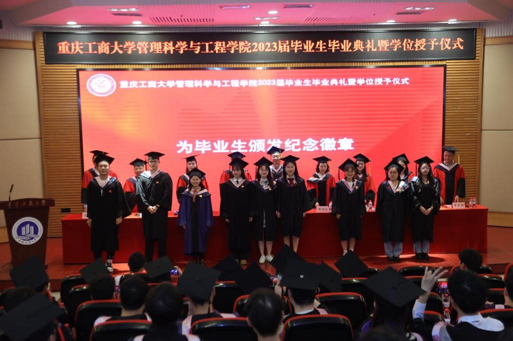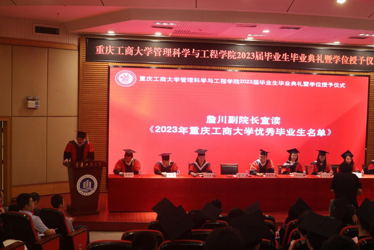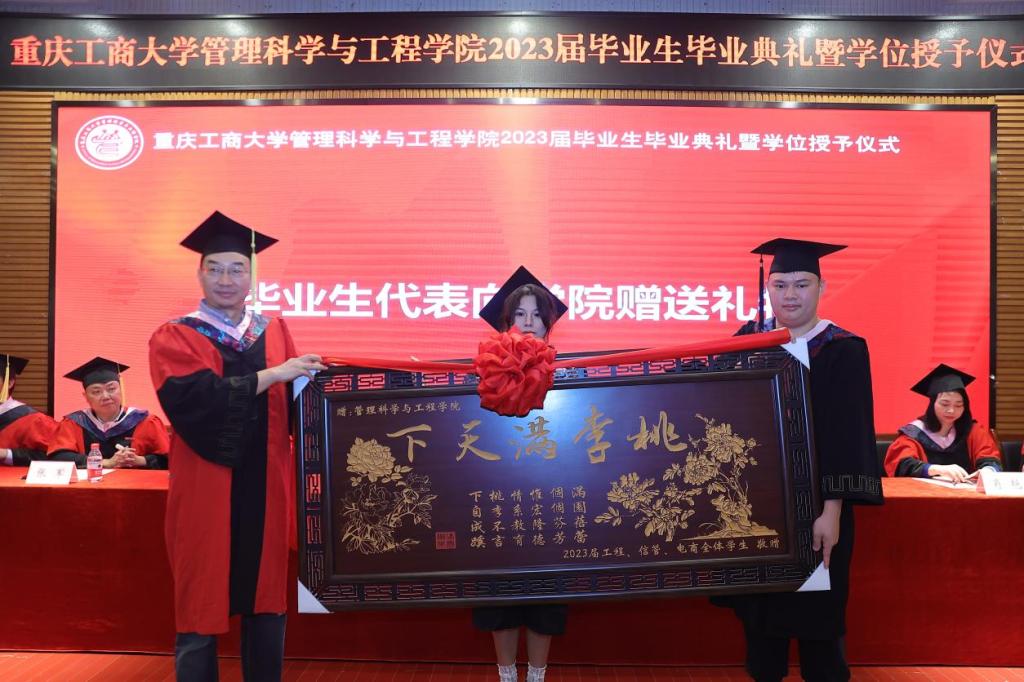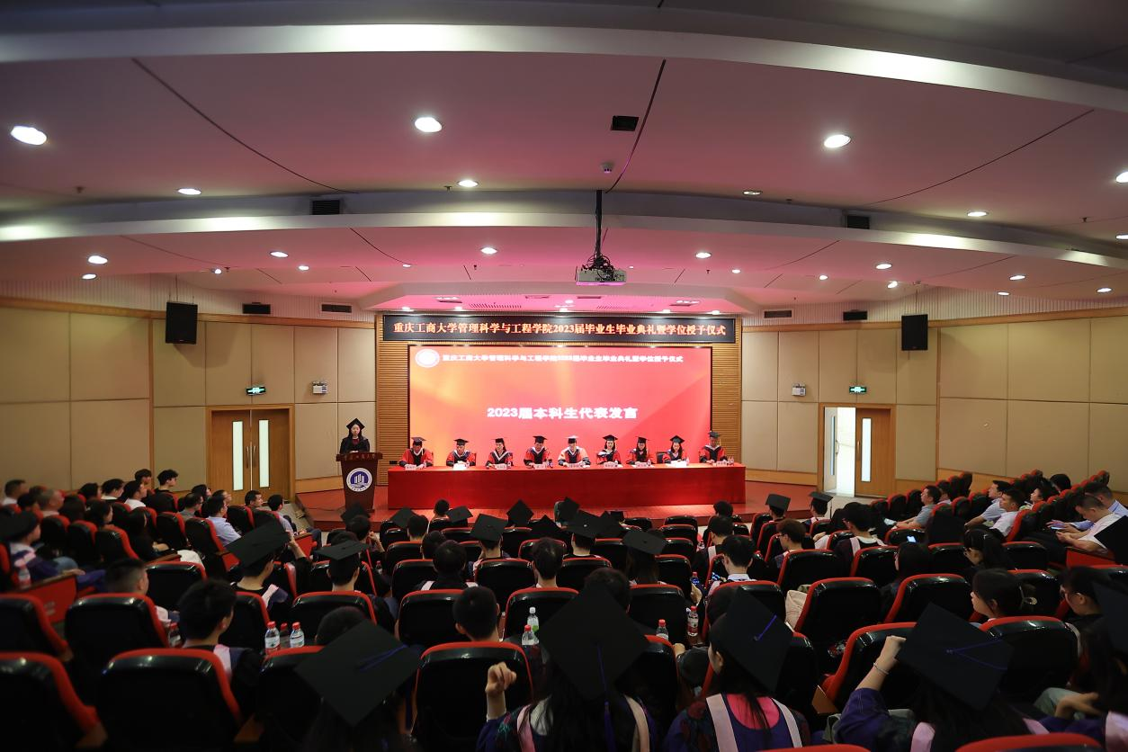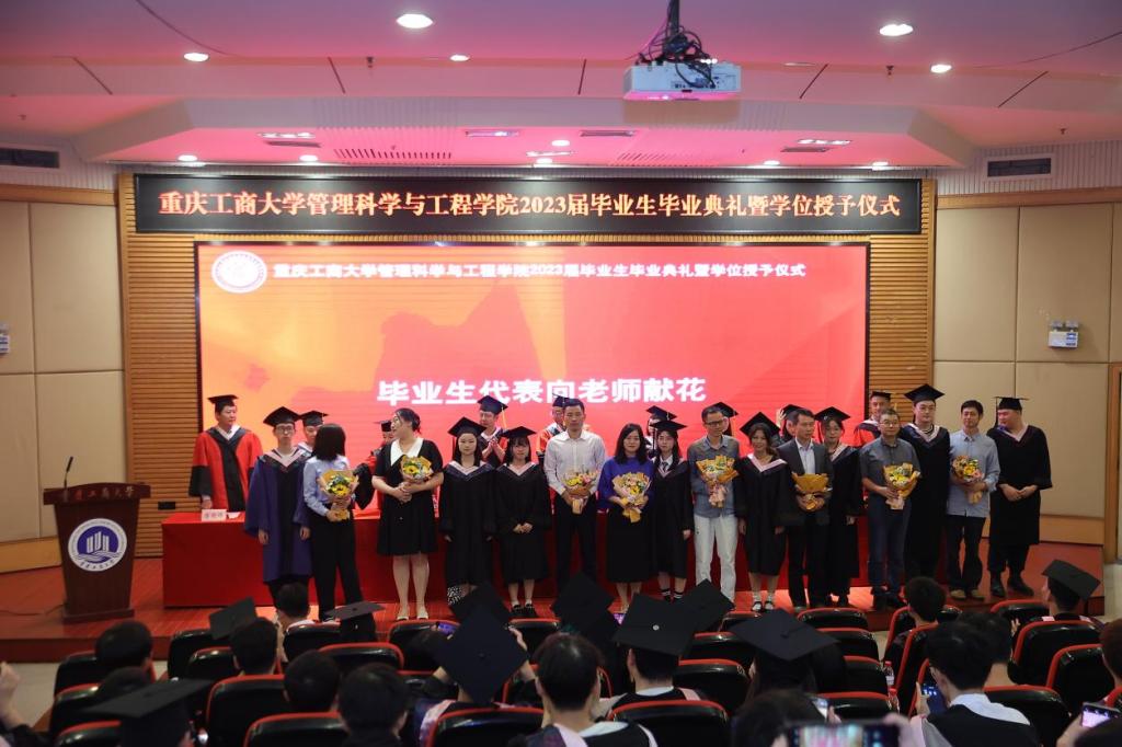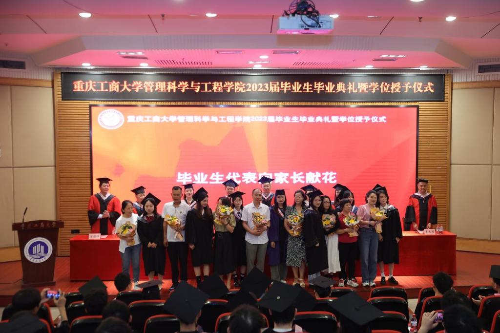 典礼现场隆重热烈,公司党委书记李华平、经理黄钟仪,副书记赵钰鑫、副经理詹川、陈久梅,工程管理系、物流管理系、电子商务系、信息管理与信息系统系主任及教师代表出席,员工代表、家长代表、及2023届全体毕业生齐聚一堂,共同见证409名毕业生的人生成长过程中重要的一刻。本次毕业生毕业典礼暨学位授位仪式由赵钰鑫副书记主持。