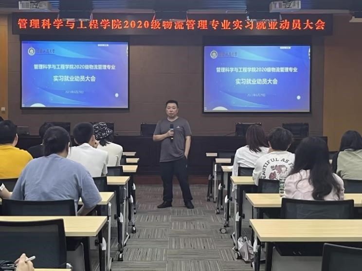 6月29日下午,太阳网集团tcy8722在南岸校区新图书馆多功能厅召开了2020级物流管理专业实习就业动员大会,物流管理系张军主任、专职辅导员邓诗语、胡雪岩参加了会议。