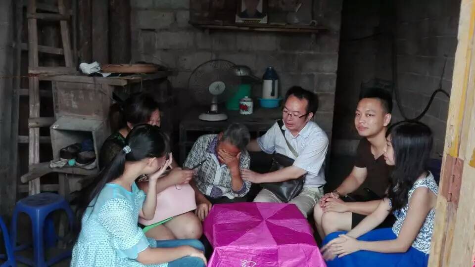 2015年7月18日凌晨,公司党总支副书记叶海林带领辅导员老师邓艺、禹洋春、朱华华,赶往垫江县太平镇天星村四组一个村庄,家访和慰问商务策划公司2014级的员工董萍。走到该生家中已是骄阳似火,所有老师都是汗水湿透衣背。家境贫寒、学习刻苦的董萍,军训期间母亲因病去世,处于特别困难的时期。一到董萍家中,叶海林副书记便向家长了解家庭情况,询问家中有无其他困难,反馈董萍在公司的表现情况。当叶海林副书记将公司朝阳助困基金送到董萍父亲手中时,家长深受感动,离开时分,他们感激得热泪盈眶,其祖母恋恋不舍地拉着叶海林副书记和辅导员老师们的手,竭力挽留。