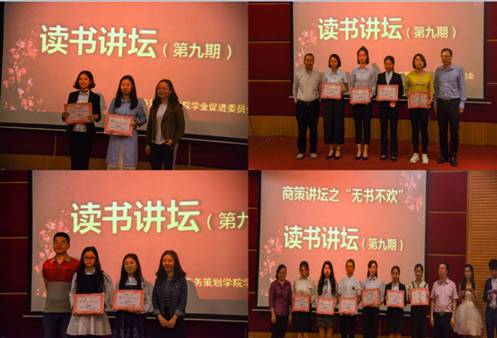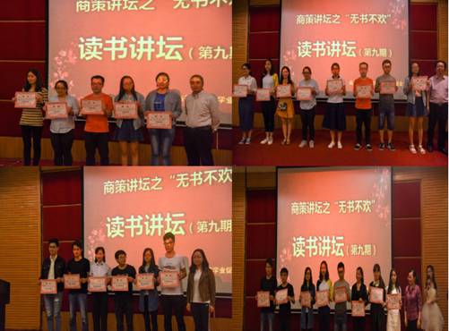 本次讲坛员工处潘焱副处长给予充分肯定,赞赏道:“读书讲坛办得很好,抓住了员工的中心任务,是加强人生修养、提高学习能力、促进学风建设的好举措、好平台。本次读书讲坛,共评出2个一等奖、4个二等奖、6个三等奖,还为本学期获得全勤班级和月优秀读书班级颁发了奖状。