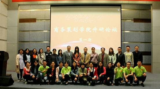 为激励公司2015级学子考研,调动考研激情,营造良好考研氛围,2017年4月28日13:30,在博智楼7100,商务策划公司升研论坛(第一期)拉开帷幕。本次论坛邀请的嘉宾有商务策划公司分党委书记邓德敏、经理骆东奇、分党委副书记叶海林、副经理詹川以及商务策划公司辅导员古纯玉、游薇、朱华华。公司2013级金艳、高翔、唐园园、徐柏英、汪小敏、张月秋、刘梅梅、冉冈,作为优秀升研学长、学姐,同2015级全体员工分享心路历程,传授升研经验,交流学习方法。本次升研论坛由公司辅导员封海粟、向丹丹、邓艺主持。