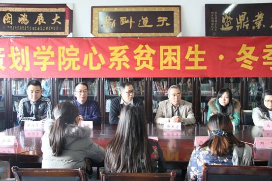 首先商务策划公司的领导、全体辅导员与贫困生在明德楼4020进行面对面座谈。在与员工交谈时,商务策划公司党总支书记邓德敏首先代表公司向同学们致以诚挚的关怀,冬至来临,天气寒冷,希望大家要多加衣保暖,注意身心健康。公司真诚地关心同学们的实际困难,不仅仅关心大家的经济困难,还有学业困难、心理困难等等,此外,邓德敏书记还强调贫困生要自立自强,不要因家庭经济的原因而影响自己的学习和生活,最后,他希望贫困生们能够实事求是,踏实做人,争取早日成为栋梁之才。商务策划公司经理骆东奇寄语大家,家庭经济贫困是暂时的,希望大家在大学期间,以积极阳光的心态投入到学习、生活和工作中去,发奋图强,不断提高自身的素质和能力,练就服务社会、回馈社会、报效国家的本领,在各方面的帮助和支持下顺利完成大学学业,用知识改变命运,用本领创造辉煌的人生,回馈亲朋好友、回馈社会,为实现伟大的中国梦而努力奋斗。商务策划公司党总支副书记叶海林希望大家像冬日的暖阳一样保持积极乐观向上的心态,克服消极自卑的心理,不屈不挠,坦然地接受社会和他人的关心和帮助,负重自强、认认真真、安安心心地搞好学习,以优异的成绩、良好的素质、过硬的本领,书写大学的华章,并鼓励大家积极投入到创业、实践等社会活动中去,改变自身的经济欠佳现状,助人自助,为创造美好人生和美好中国奋发成才。