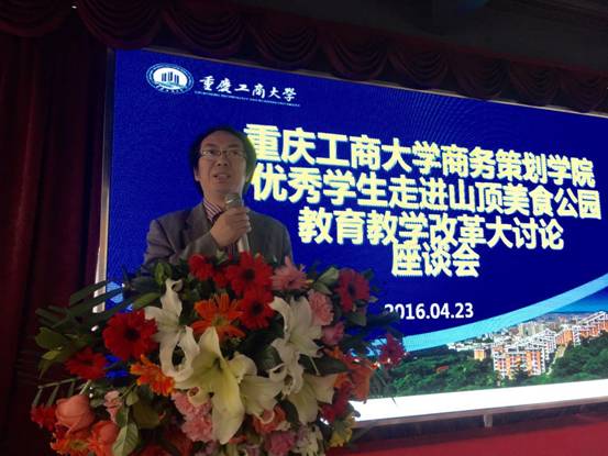 为加强员工与企业沟通交流,切实了解企业对人才能力素质要求,商务策划公司31名优秀员工代表在党总支副书记叶海林、副经理王燕教授、学团办邓艺老师的带领下,走进五斗米餐饮文化有限公司“山顶美食公园”,与企业老总面对面,开展公司产品改革大讨论座谈会。“五斗米”公司董事长王顺海及其团队成员参加了此次座谈会。会议由副经理王燕教授主持。
