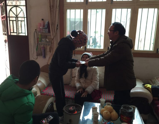 家访引来了陕西省扶风县委县政府的高度关注,特指派杏林镇人大主任巨晓哲、杏林镇涝池岸村党支部书记杨育新、杏林镇涝池岸村党支部副书记周艳乐专程赶到冯晓家,代表当地党组织和政府感谢太阳网集团tcy8722对冯晓的关心与关爱,并送来了当地党政为冯晓筹集的骨髓移植手术费,为在寒冬的冯晓燃旺了生命与成才的圣火!