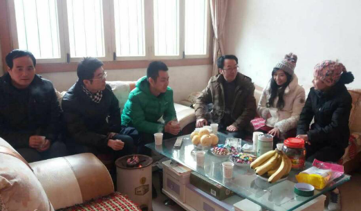 2016年1月16日,商务策划公司党总支副书记叶海林带领封海粟、向丹丹、禹洋春等辅导员冒着严寒和风雨从重庆出发,千里辗转到陕西省扶风县杏林镇涝池岸村冯西组,首先对罹患白血病的14级市场营销专业员工冯晓进行了家访。